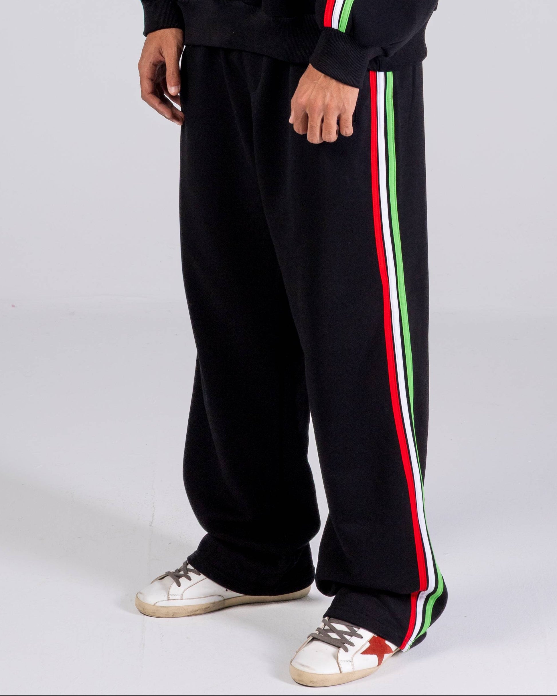 The "Iconica" sweat pants pays homage to Italian art, fashion, and ingenuity. with the signature red, white and green stripe detailing. Crafted from premium heavyweight fleece for durability and comfort.